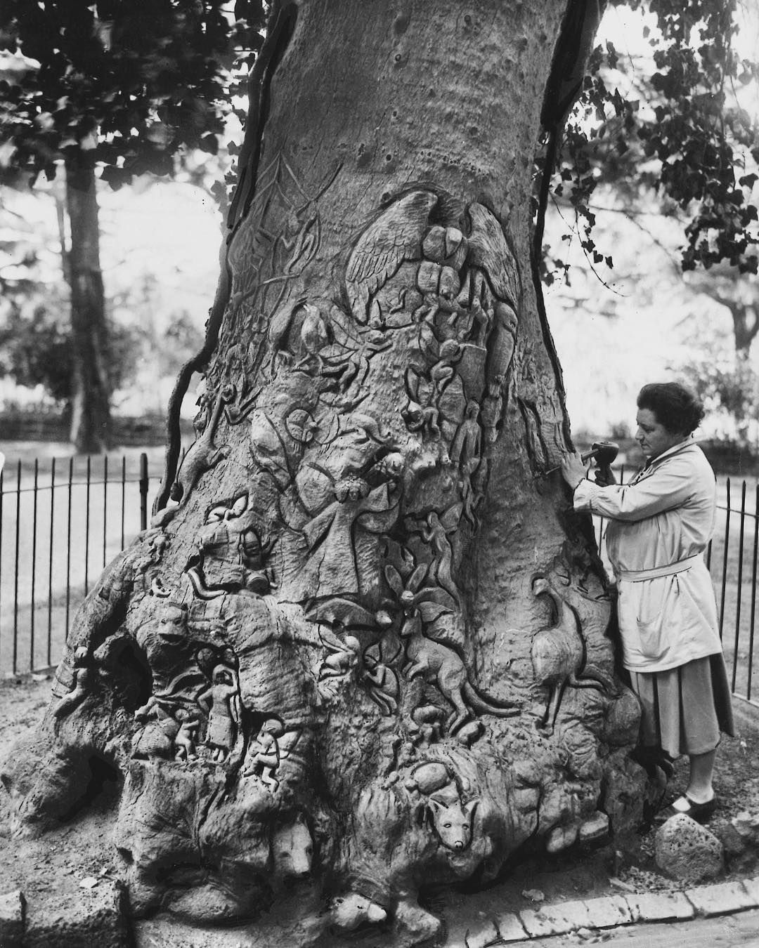 Ola Cohn, an Australian artist, carved her Fairies Tree from 1931-34 and dedicated it to the children of Melbourne. You can see it in Fitzroy Gardens.