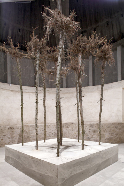 Gustav Metzger (1926-2017) Born in Nuremberg, Germany to Polish parents. He fled with the Kindertransport to London in 1939. Heavily influenced by the mass destruction of war, he co-founded the Auto Destructive Art movement. Flailing Trees (2009-10), are inverted willows plunged upside down in concrete. Speaking about the work he said it was, “a stand against the brutality that humans display towards the natural world.” Pete Townshend of The Who attended his lectures at art school in the early 60s and credits him for his signature act of smashing his guitar and amps.