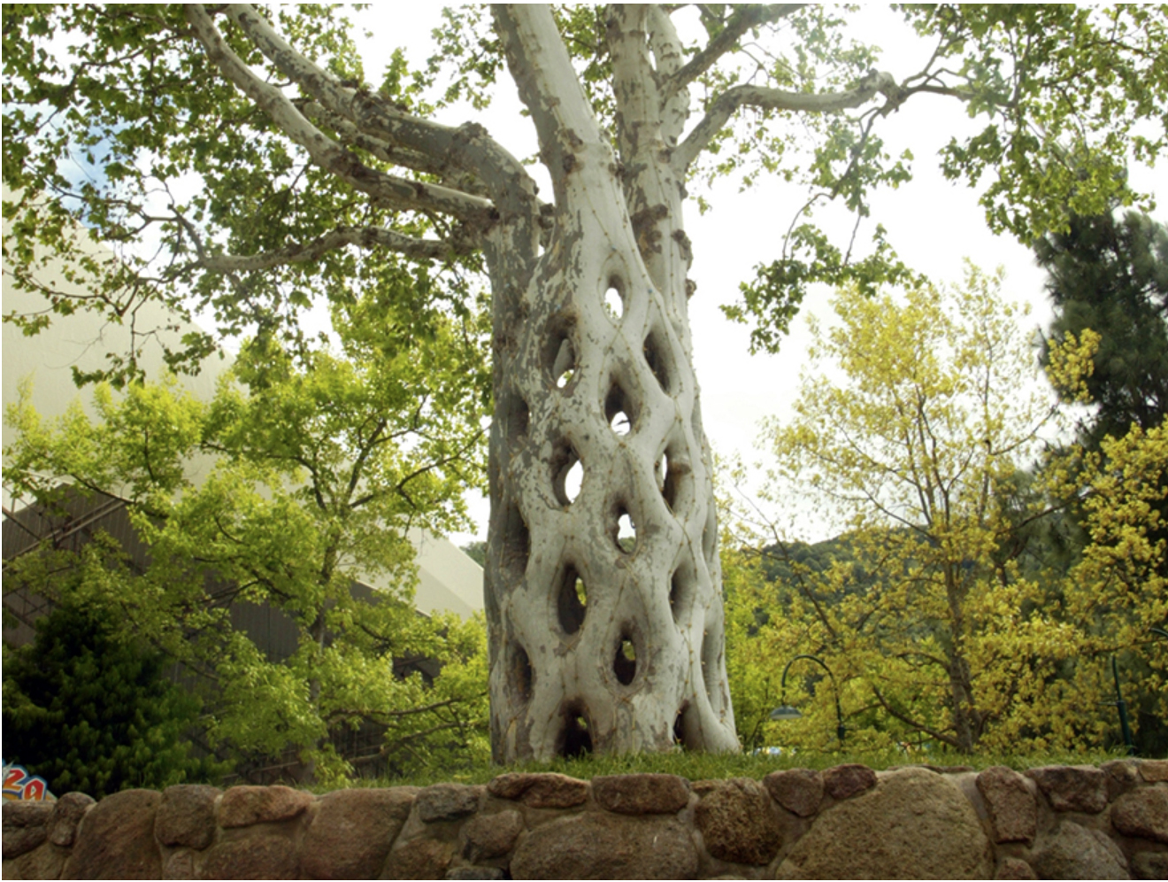 Axel Erlandson was born in Sweden in 1884 and immigrated with his family to the United States when he was two years old. Eventually settling in California he became a farmer and began shaping trees as a hobby in 1925. The basket tree is made from six American Sycamore trees planted in a circle and grafted together. You can see many examples of his shaped trees at Gilroy Gardens, a theme park in Gilroy, CA.