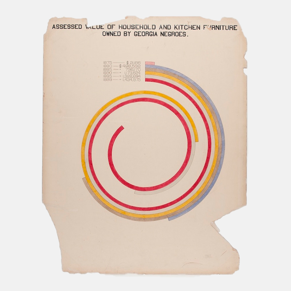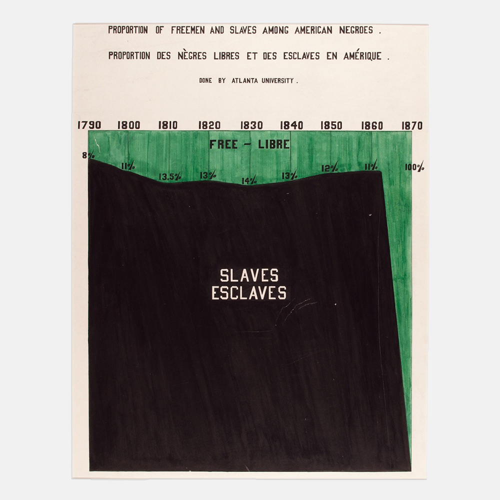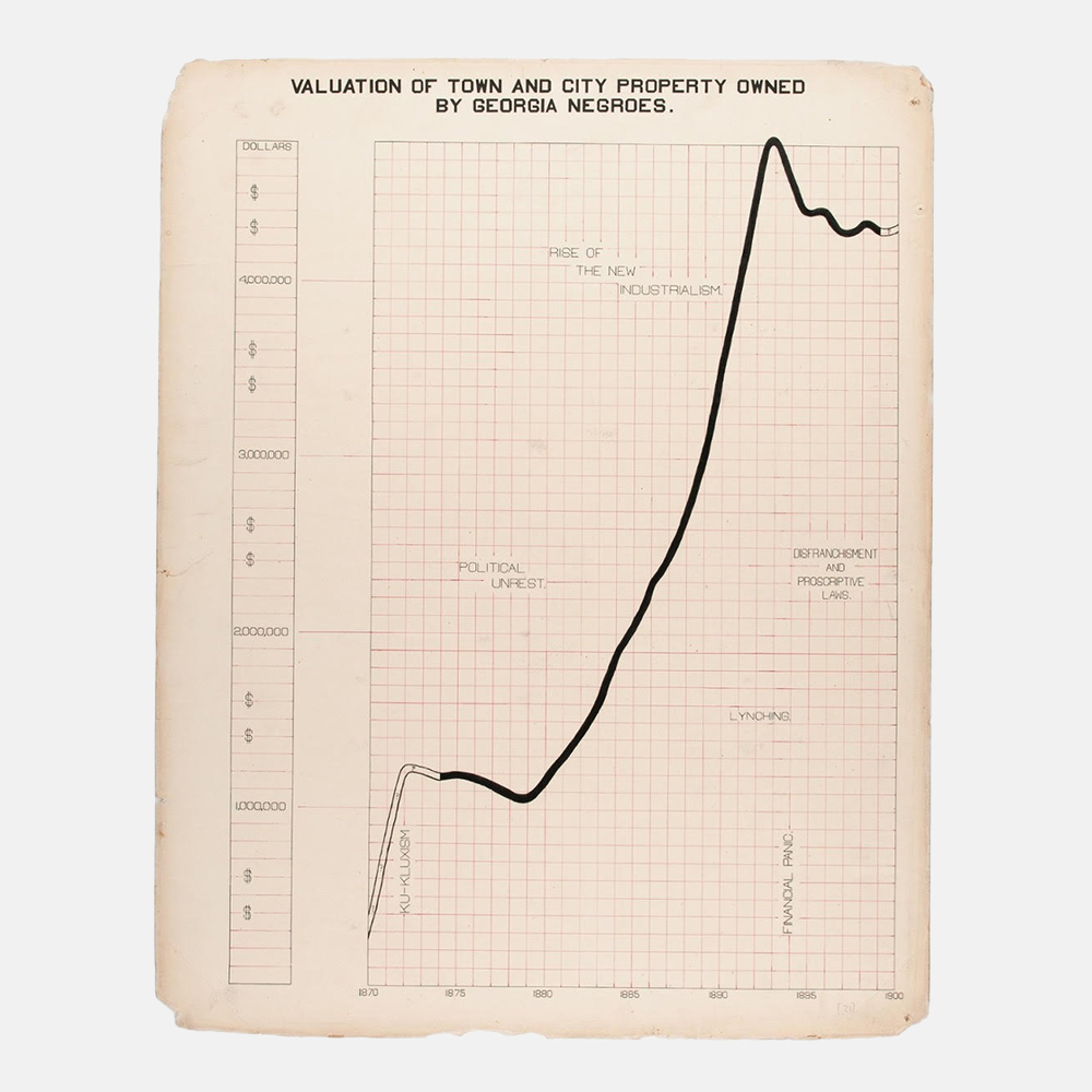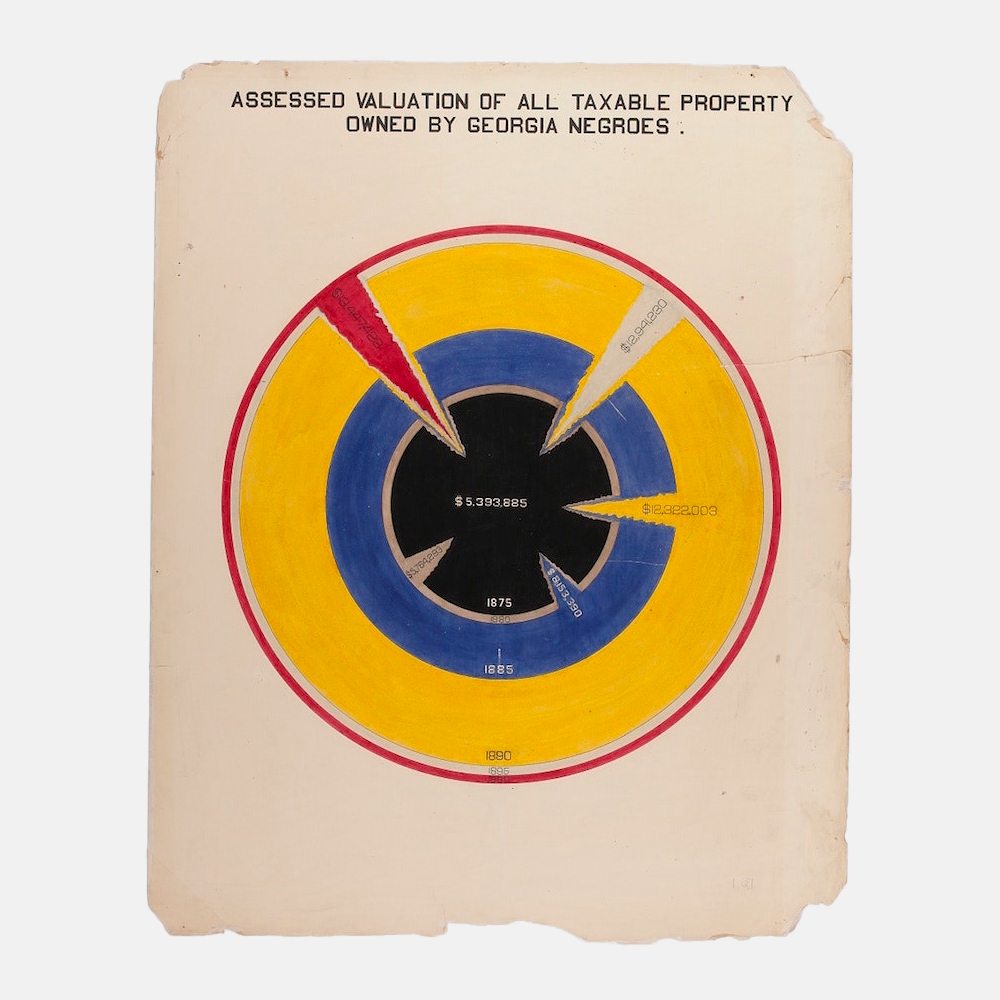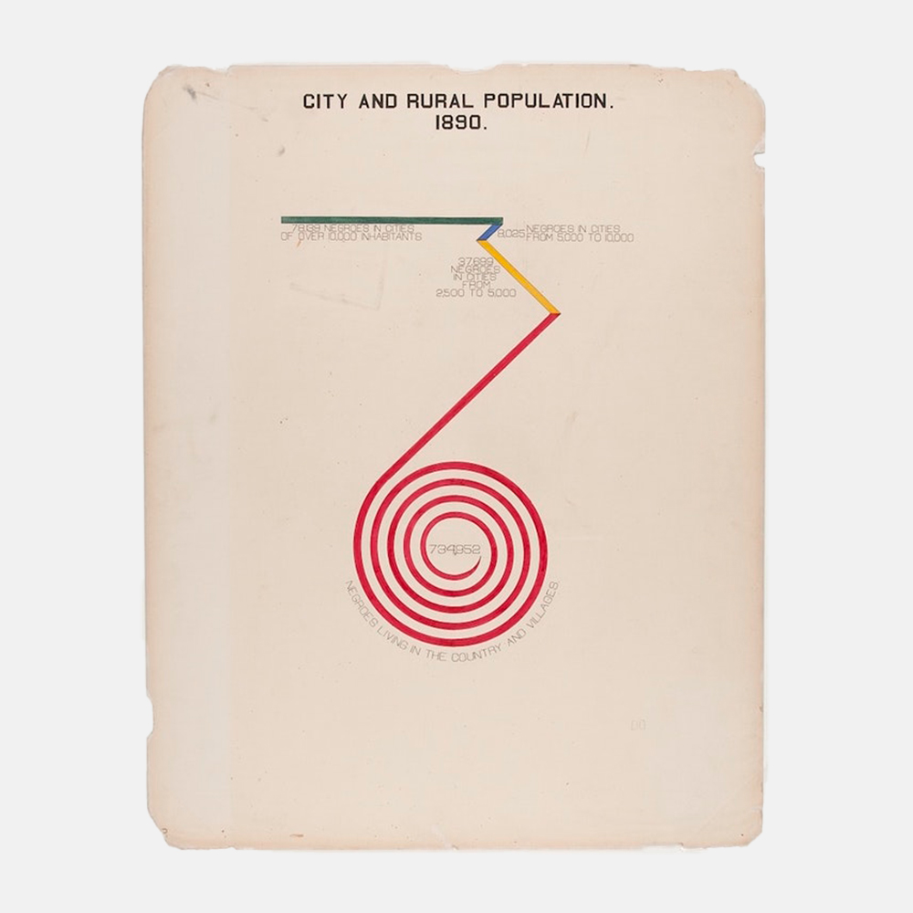 In 1900, at the Paris Exposition, W.E.B. Du Bois presented a series of charts, graphs, and maps to visually depict inequality in the United States. As a writer, sociologist, and activist, these data visualizations draw together Du Bois’s understanding of the societal divides and segregation. Nine years later, on his lifelong path to advocate for equal rights, Du Bois co-founded the NAACP.